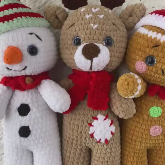 Christmas Amigurumi Crochet Pattern Bundle – Deer + Gingerbread + Snowman (PDF Download)